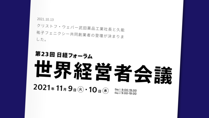 (以下、イベント公式ページより抜粋)毎年秋に開く世界経営者会議は日本経済新聞社が主催する国際ビジネスイベントの最高峰です。世界の著名な経営者が2日間にわたって問題意識を共有し、経営理念や企業戦略などを語り合います。第1回…