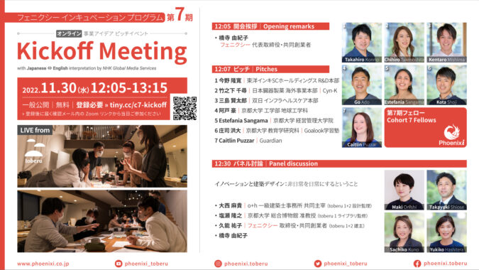 【↑イベント案内画像ダウンロード:PDF | JPG】 株式会社フェニクシーは11月30日、同社インキュベーションプログラム第7期の開始イベント「キックオフミーティング」を開催します。新たなフェロー(プログラム参加者)7…
