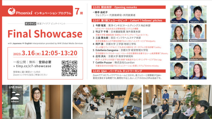 【↑イベント案内画像ダウンロード:PDF | JPG】 株式会社フェニクシーは3月16日、同社インキュベーションプログラム第7期の居住期間終了イベント「ファイナルショーケース」を開催します。無料で視聴できる一般公開イベン…