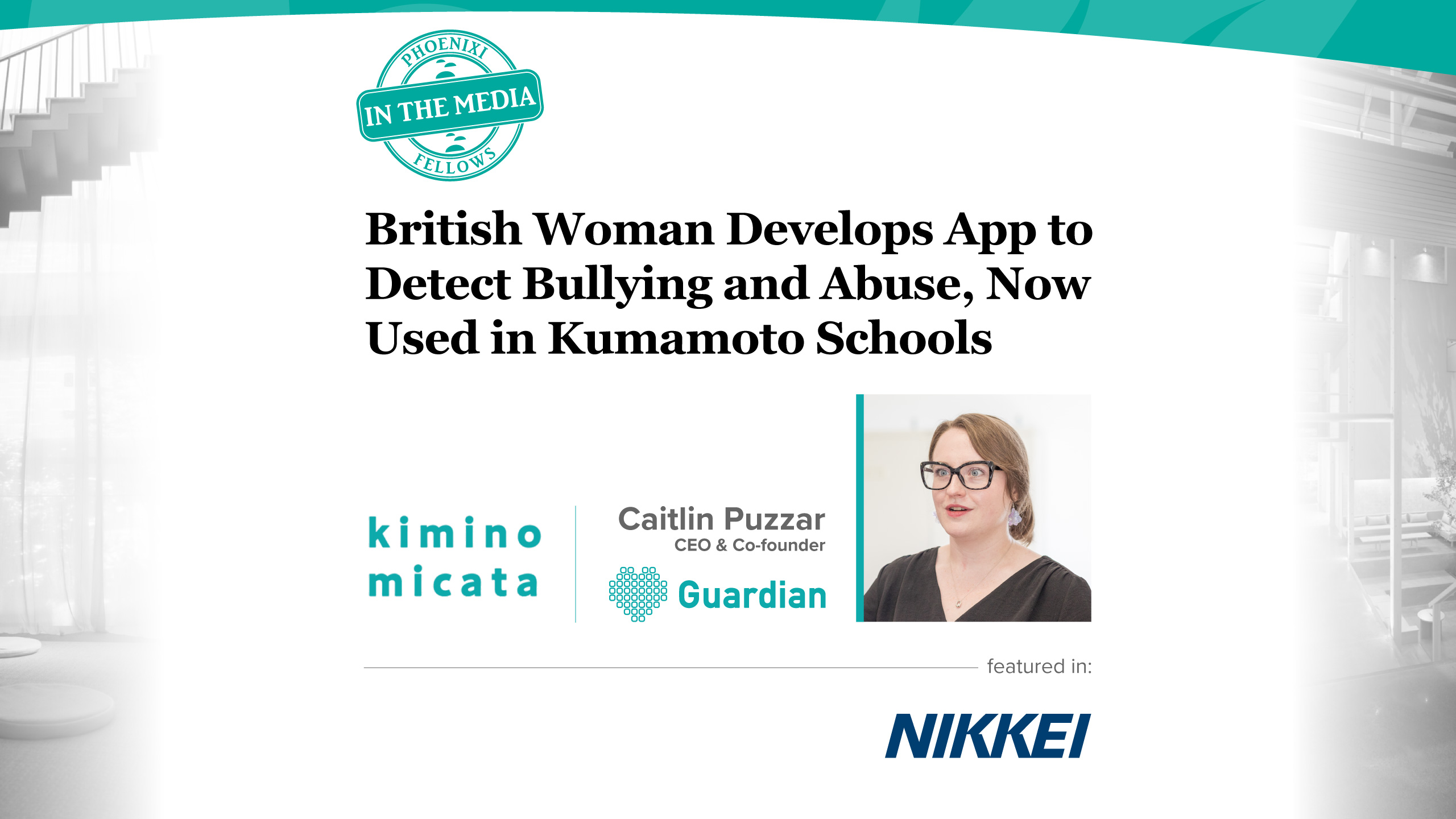 - 2025/8/27 日本経済新聞「いじめや虐待察知アプリ、英国人女性が開発 熊本県の小中高で使用」(ガーディアン代表・フェニクシー7期生 ケイトリン・プーザー)