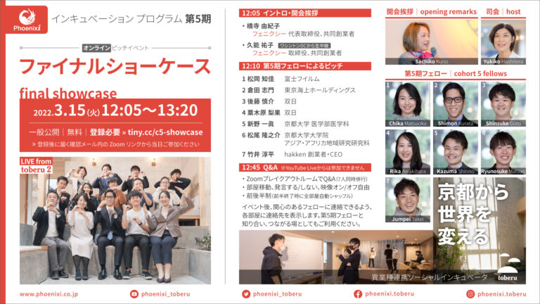 1月272022 【フェロー活動/進捗】双日 後藤慎介さん(フェニクシー5期生)、大阪市立大学ヘルステックスタートアップス2021デモデイで優秀賞:事業プラン「健康活動を習慣化させるサービス “Tassei!!”」 Read more