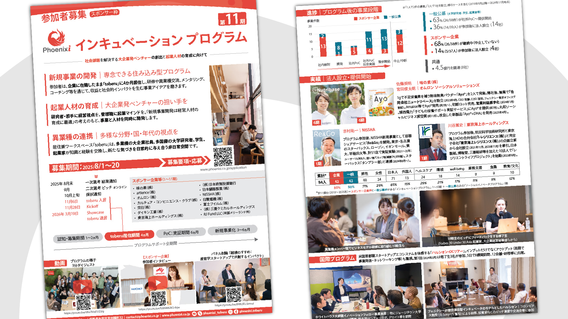 株式会社フェニクシーは2025年8月1日から、同社インキュベーションプログラム第11期(2025年11月~2026年3月)スポンサー枠への募集を開始します。