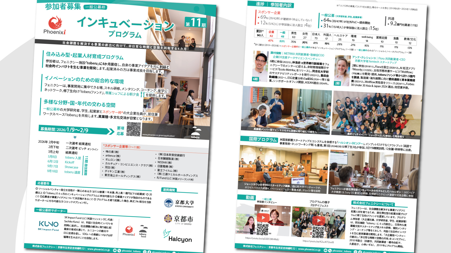 株式会社フェニクシーは2026年1月9日から、同社インキュベーションプログラム第11期(2026年5~9月)一般公募枠*への募集を開始します。