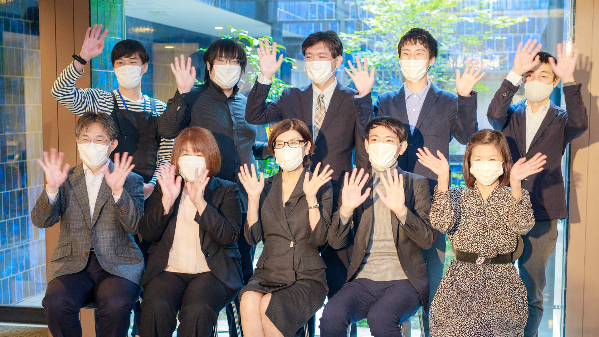 第3期フェロー(左から、内山三晴、百瀬陽、松竹理匠、田中明子、北村健、島田英徳)と橋寺由紀子 代表取締役(奥中央)