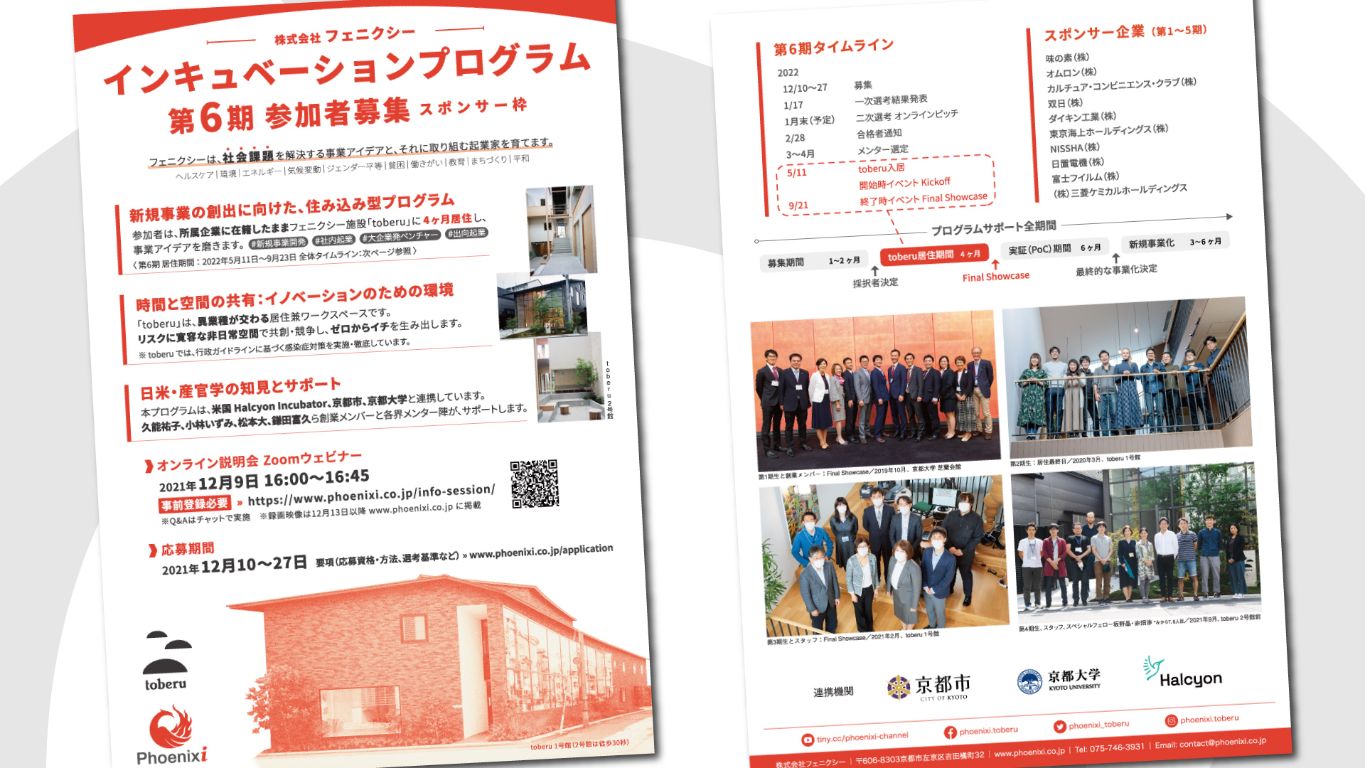 株式会社フェニクシーは12月10日から、同社インキュベーションプログラム第6期(2022年5~9月)スポンサー枠の参加者を募集します。